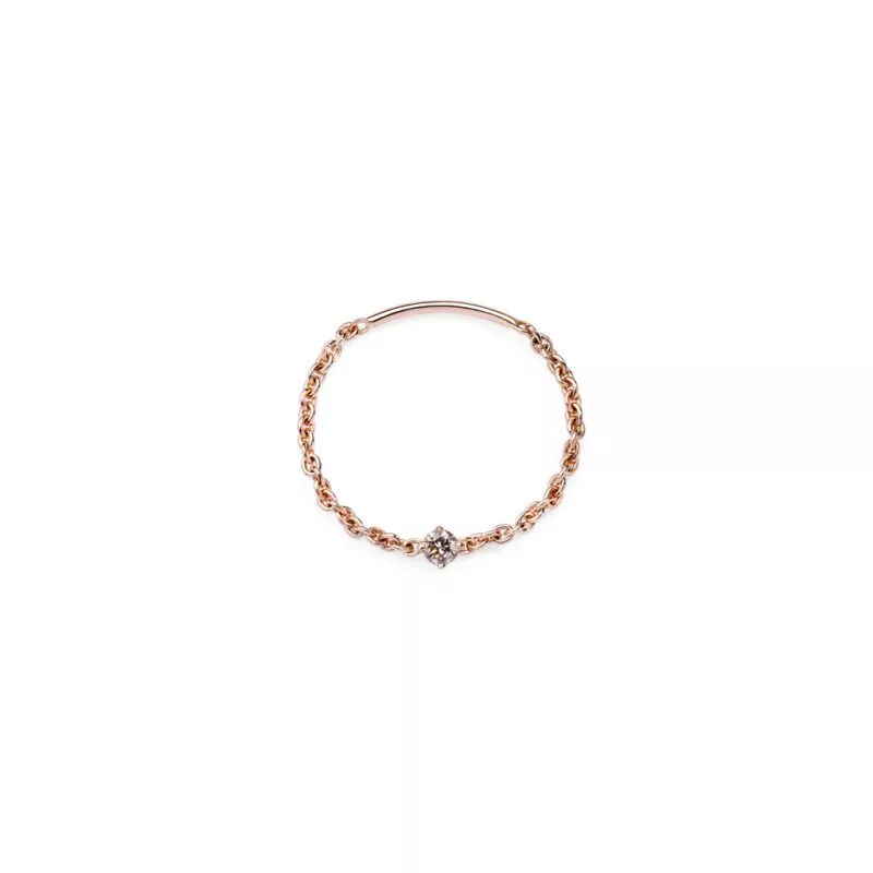 L’anello con catena M è realizzato in oro rosa 18 kt con un brillante diamante brown ad illuminarlo. È disponibile con diverse pietre preziose.