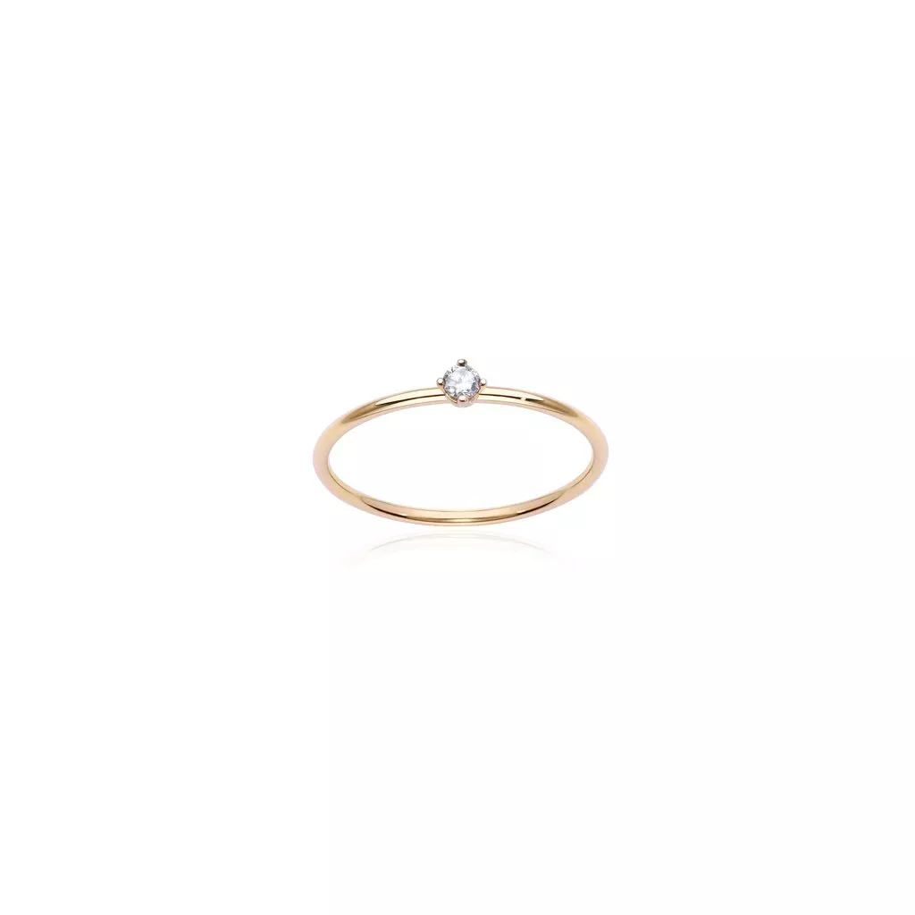 Anello White Solitaire Yellow M della collezione Solitaire di Burato, realizzato in oro giallo 18 kt ed abbellito da un diamante bianco.