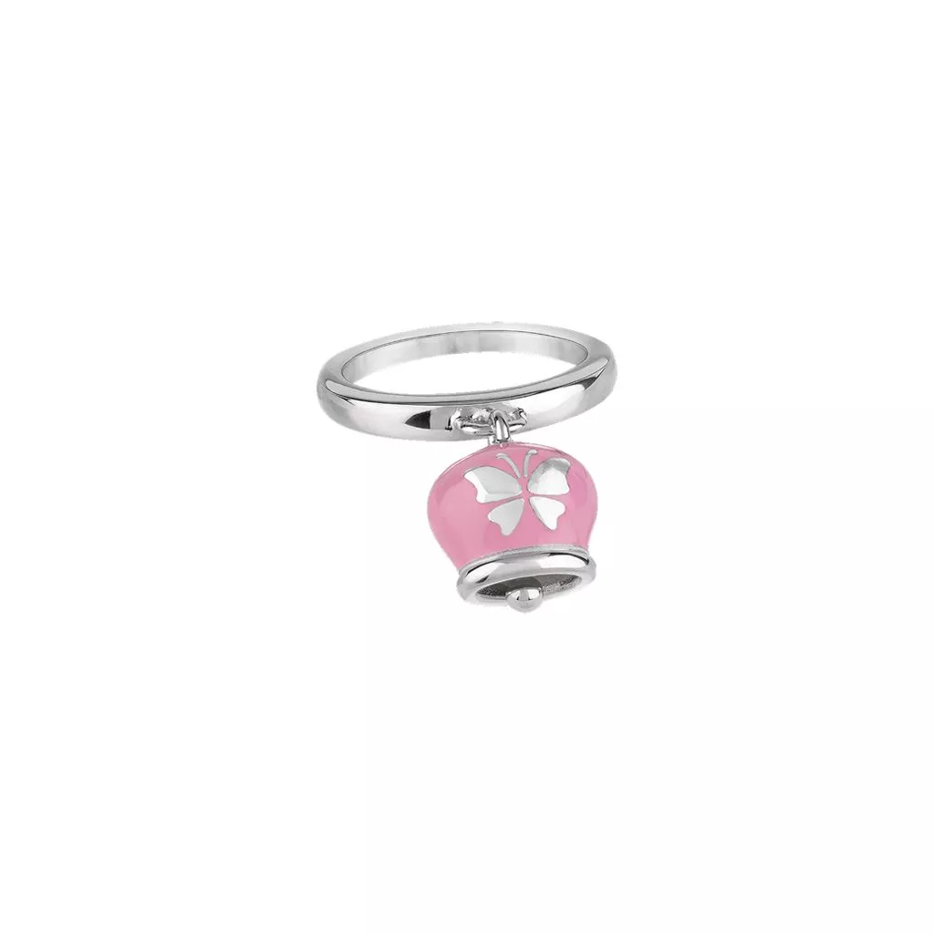 Questo anello in argento con Campanella piccola è abbellito da uno smalto rosa intenso. Una graziosa farfalla sul retro lo decora.