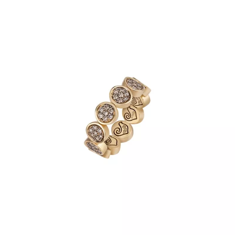 Questo anello veretta Paillettes di Chantecler è realizzato in oro giallo 18Kt. Il raffinato pavé di diamanti champagne lo abbellisce ulteriormente.