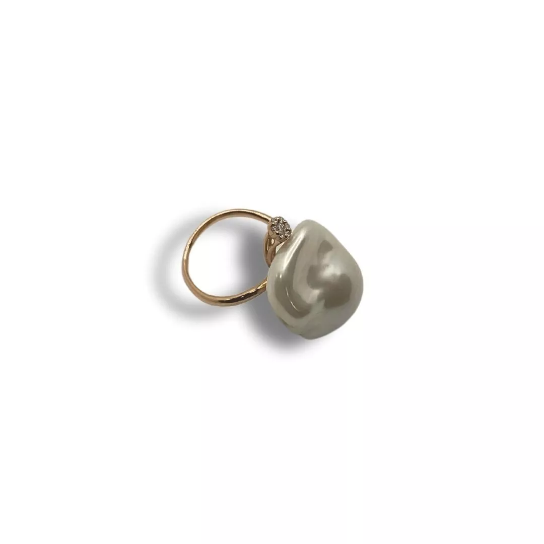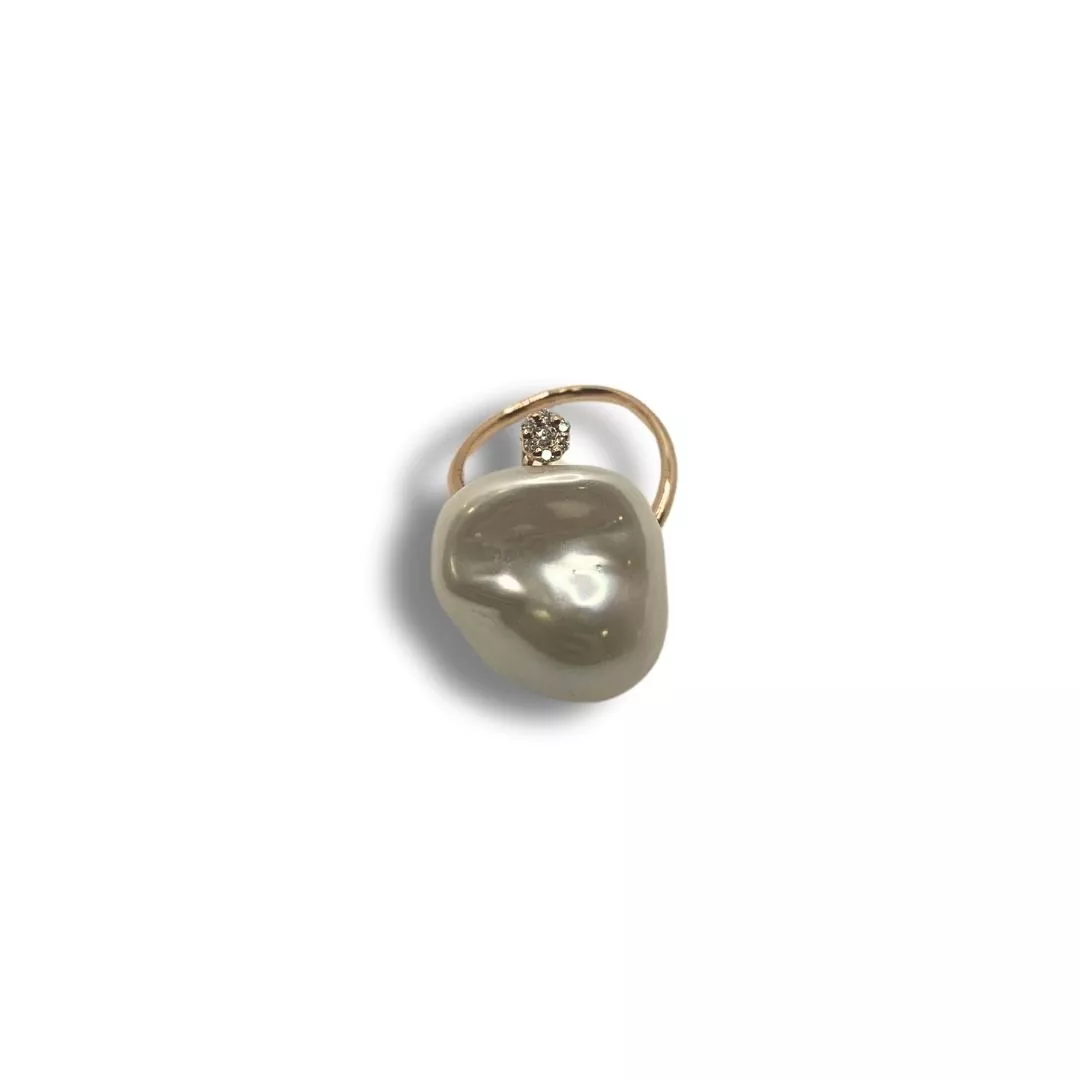 Anello Coscia in oro rosa con perla freshwater barocca e diamanti.