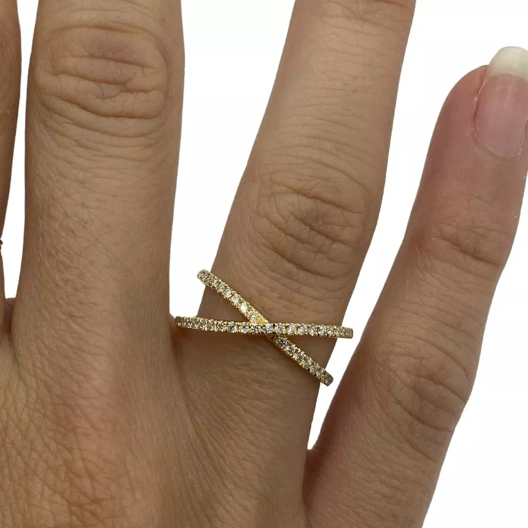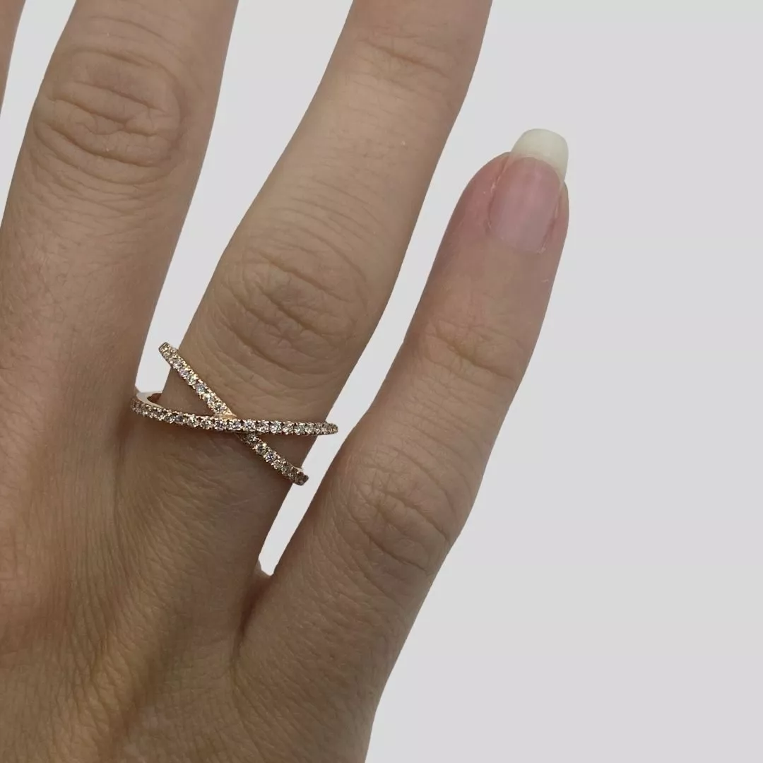 Anello Crivelli in oro rosa o in oro giallo con due file di diamanti a incrocio.