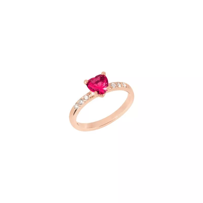 Anello Dodo della collezione Cuore in oro rosa 9K con 1 rubino sintetico e 6 diamanti bianchi.