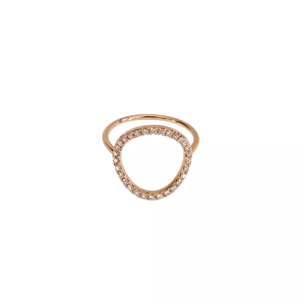Anello Marco Gerbella con bolla a filo e diamanti bianchi. Disponibile in oro rosa e in oro bianco.
