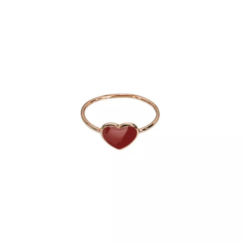 Anello Marco Gerbella in oro rosa con cuore smaltato rosso. Grandezza del cuore da lato a lato 0,9 cm x 0,8 cm.