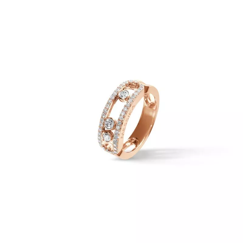 Questo anello pavé in oro rosa 18 carati fa parte di Move, la collezione firmata della Maison Messika.