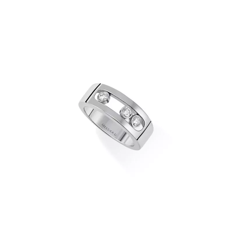 Anello della collezione Move Joaillerie di Messika in oro bianco con tre diamanti bianchi.