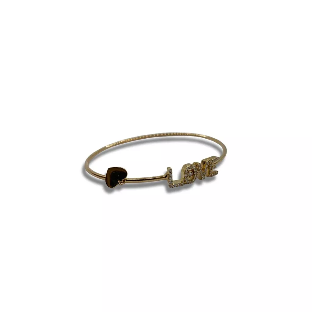 Bracciale Crivelli rigido in oro rosa con scitta “love” impreziosita da diamanti bianchi.