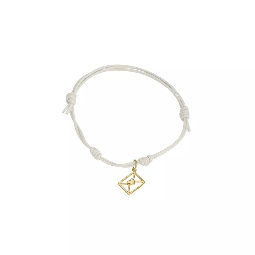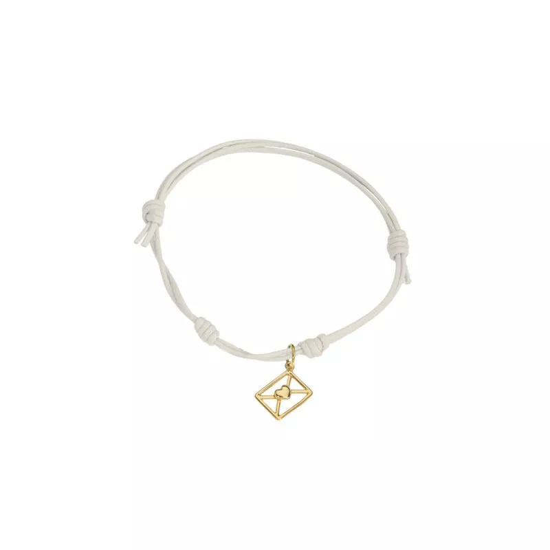 Bracciale Marco Gerbella con ciondolo busta da lettere. Disponibile in oro rosa e oro giallo. Cordino disponibile in diversi colori.