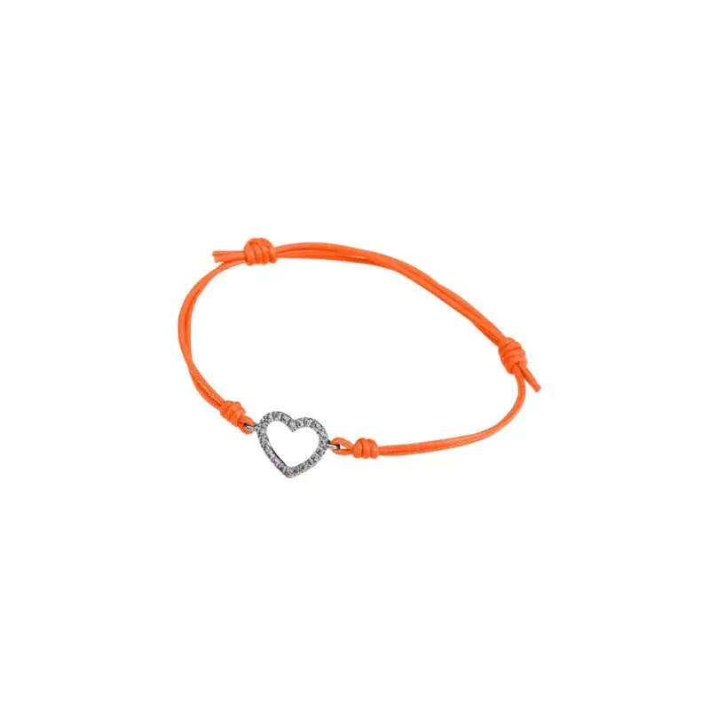 Bracciale Marco Gerbella con cuore a filo con diamanti. Disponibile in oro rosa e in oro bianco. Cordino disponibile in diversi colori.