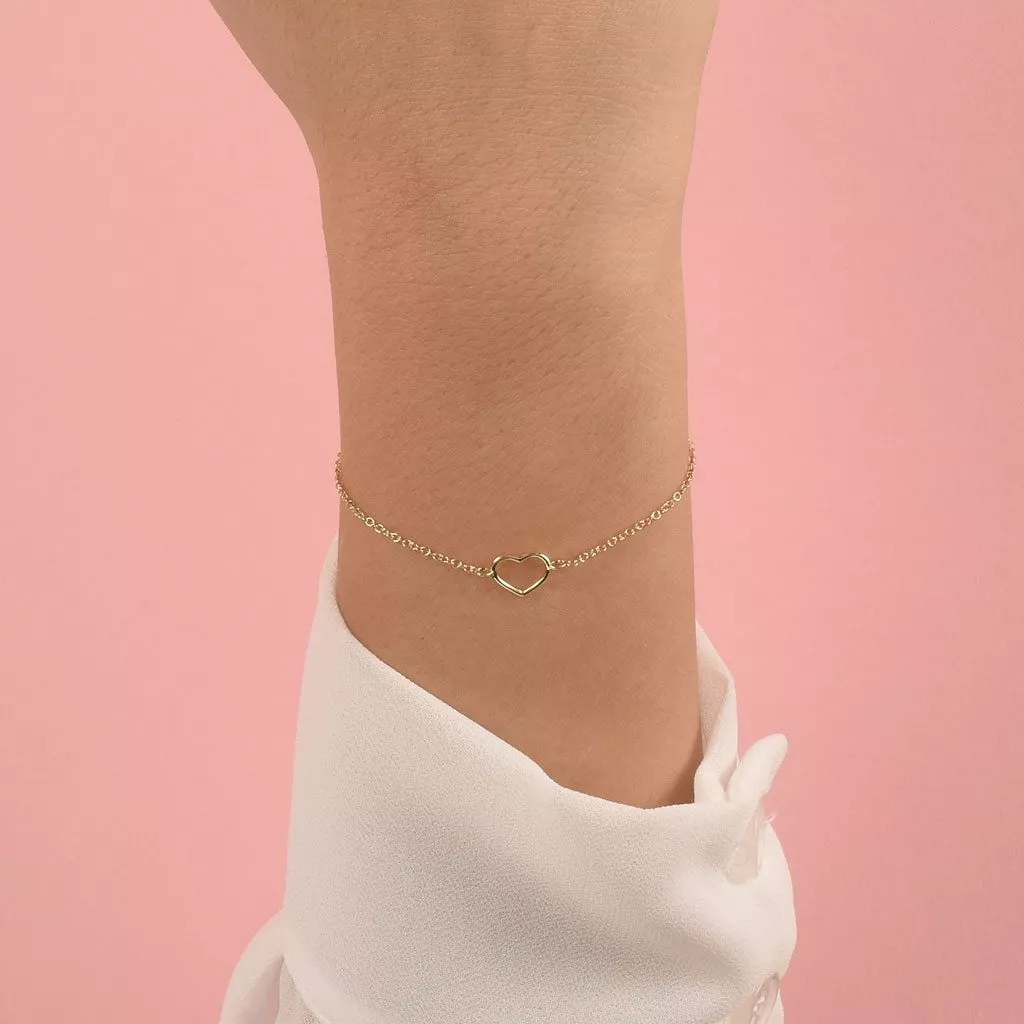 Bracciale a catena Marco Gerbella con cuore piccolo, in oro 18 K. Disponibile in oro giallo o in oro rosa.