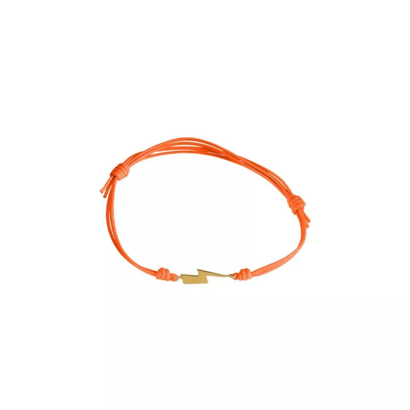 Bracciale Marco Gerbella con fulmine. Disponibile in oro giallo e in oro rosa. Cordino disponibile in diversi colori.