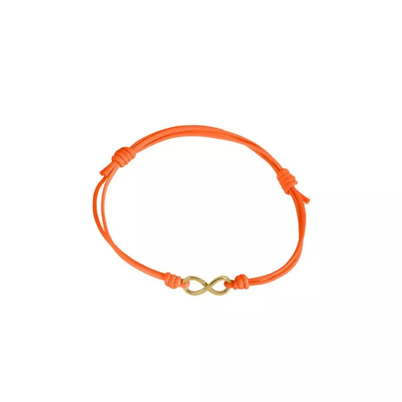 Bracciale Marco Gerbella con infinito. Disponibile in oro giallo e in oro rosa. Cordino disponibile in diversi colori.