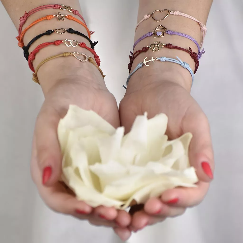 Bracciale Marco Gerbella con stella. Disponibile in oro giallo e in oro rosa. Cordino disponibile in diversi colori.