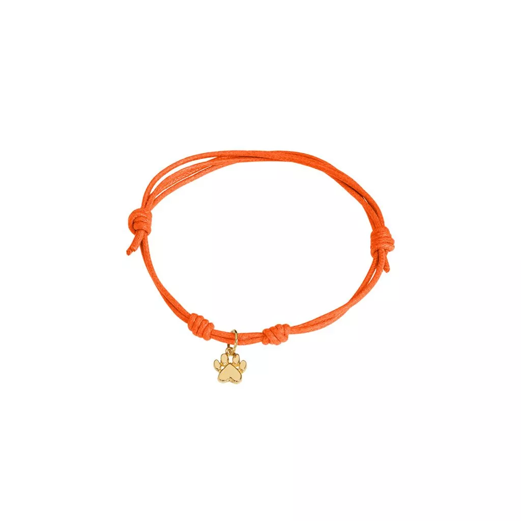 Bracciale Marco Gerbella con zampetta. Disponibile in oro rosa e in oro giallo. Cordino disponibile in diversi colori.