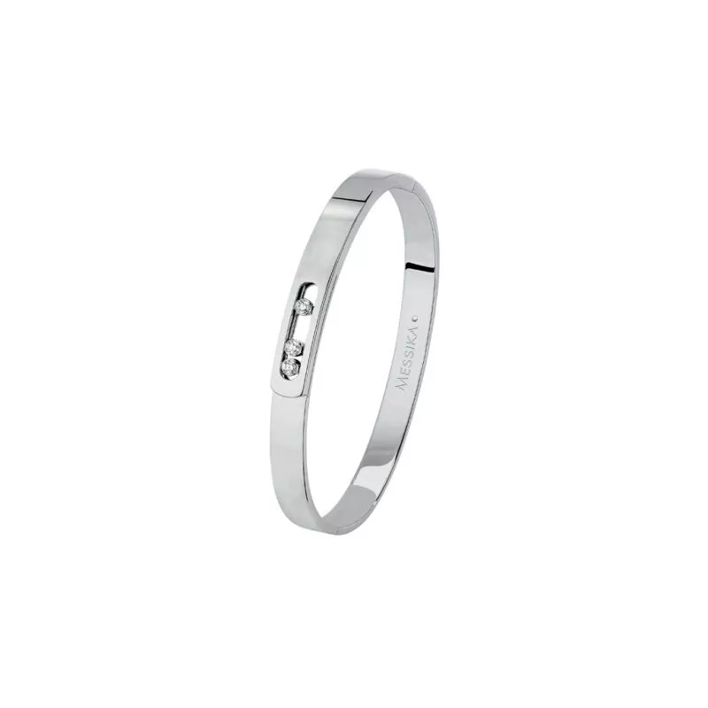Bracciale bangle della collezione Move Noa di Messika in oro bianco con tre diamanti bianchi.