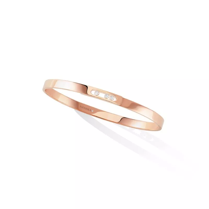 Il bracciale è realizzato in oro rosa. Tre diamanti mobili lo illuminano ulteriormente.