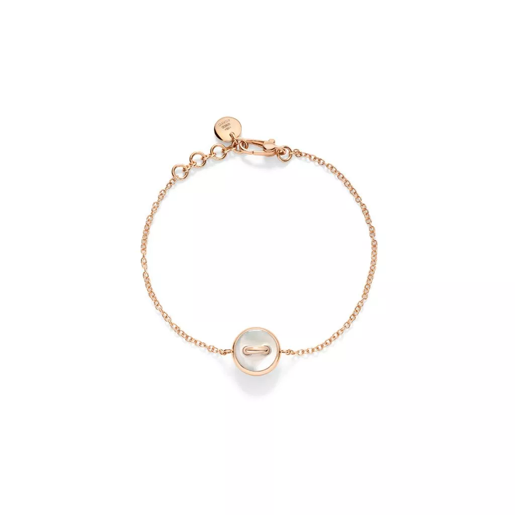 Bracciale Pomellato Pom Pom Dot in oro rosa con malachite da un lato e madreperla bianca dall’altro. Diamanti.