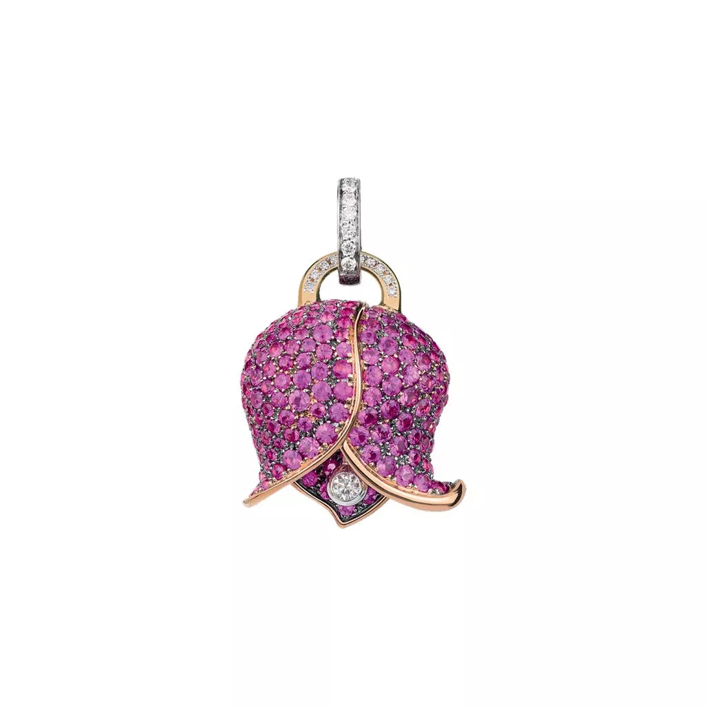 Ciondolo Chantecler Campanella grande boungaville in oro rosa KT 18, diamanti e zaffiri rosa.
