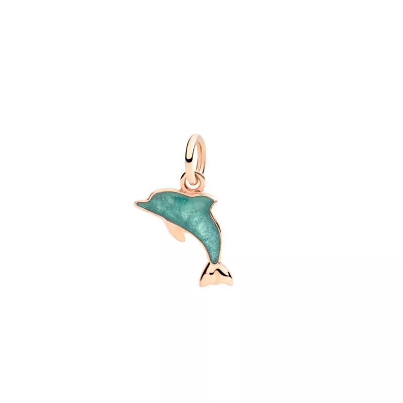 Ciondolo Dodo Delfino realizzato in oro rosa 9K e da smalto ottanio effetto madreperla.