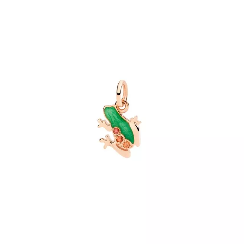 Ciondolo Dodo rana collezione ‘Colours of Nature’ in oro rosa con smalto verde e zaffiri arancio.