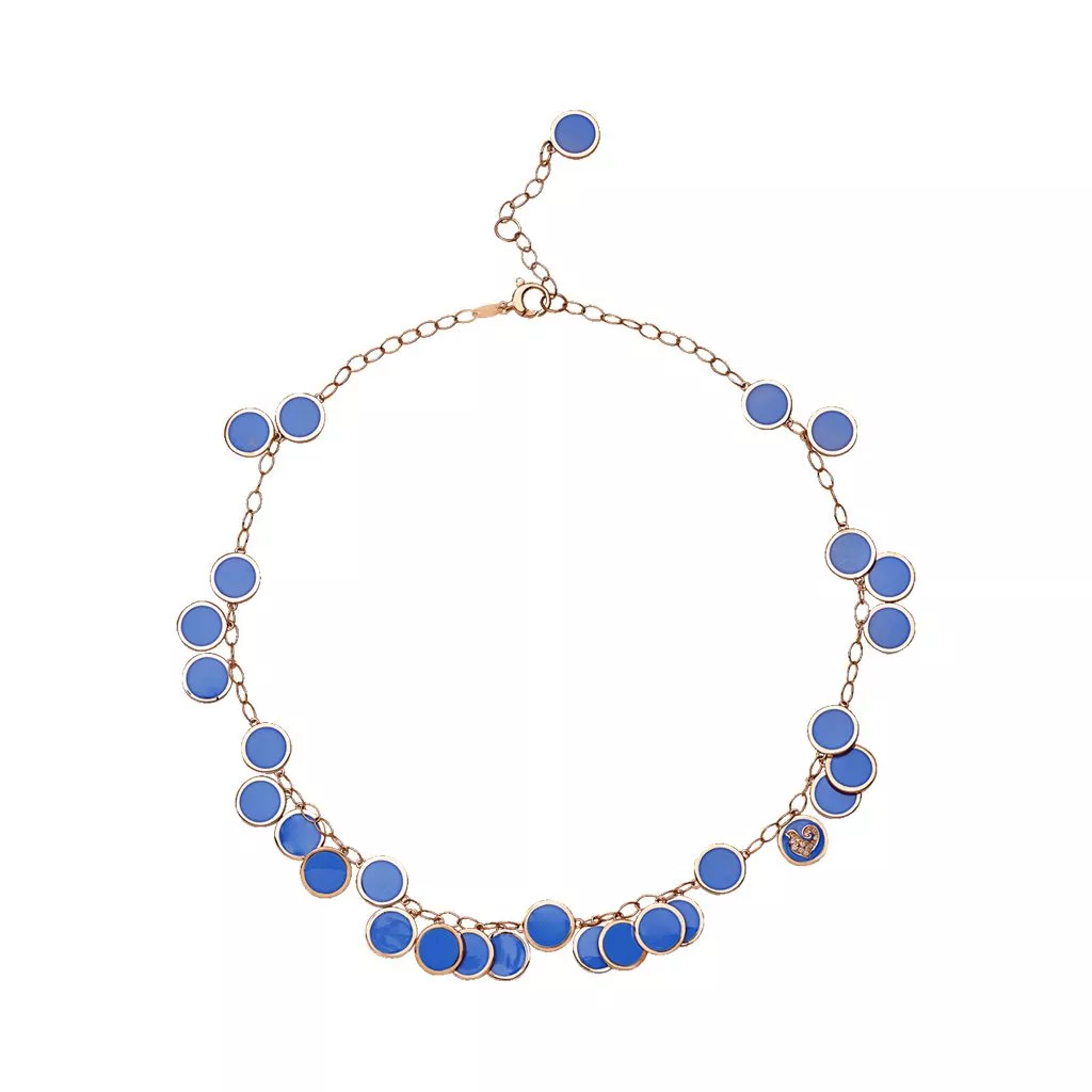 Collana Chantecler Paillettes girocollo realizzata in oro rosa e smalto blu Capri. Abbellita da diamanti bianchi. Lunghezza 38-42 cm.
