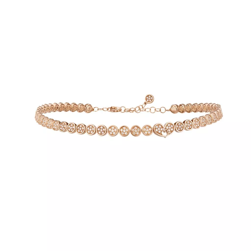 Collana choker Chantecler Paillettes in oro rosa 18Kt e full pavé di diamanti.