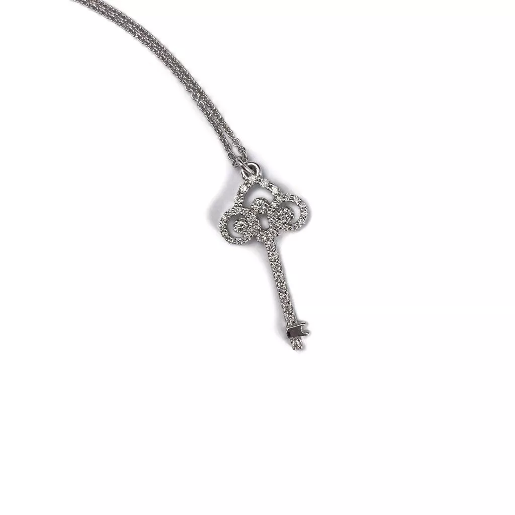 Collana Crivelli con chiave in oro bianco con diamanti. Oro 6,90 gr, diamanti 0,55 ct.