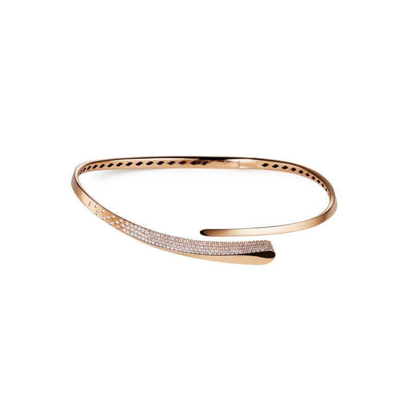 Il choker Like Regular presenta un abbinamento tra l’oro rosa ed il pavé di diamanti bianchi.
