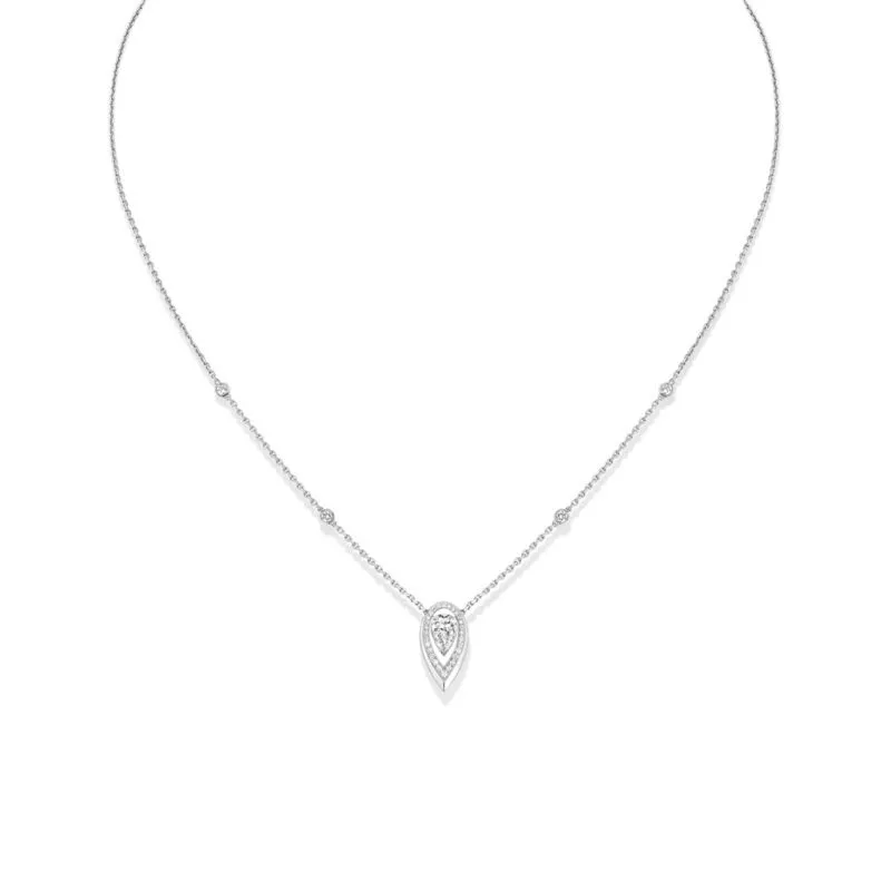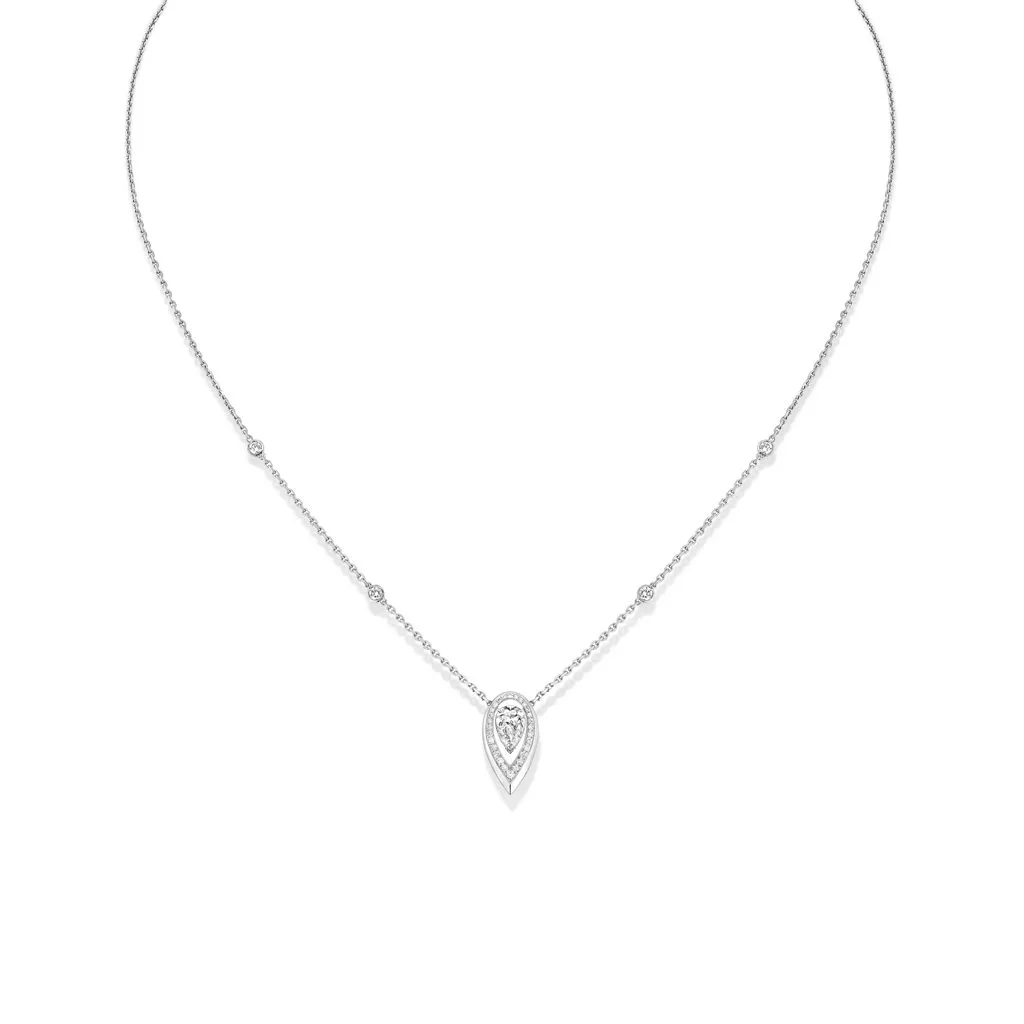 Collana Messika Fiery 0,25 ct in realizzata in oro bianco. Abbellita da brillanti diamanti bianchi e un diamante taglio a pera centrale.