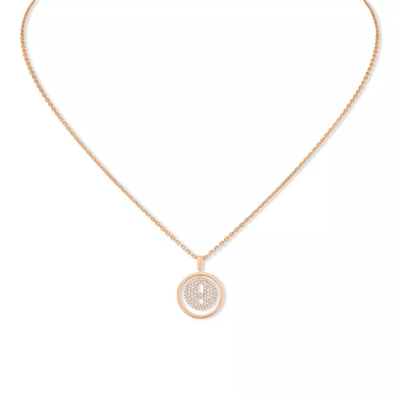 Collana PM della collezione Lucky Move di Messika in oro rosa con pavé di diamanti bianchi.
