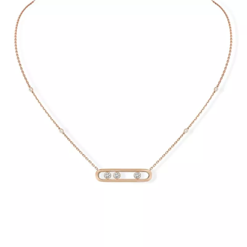 Collana della collezione Move Classique di Messika in oro rosa con diamanti bianchi.
