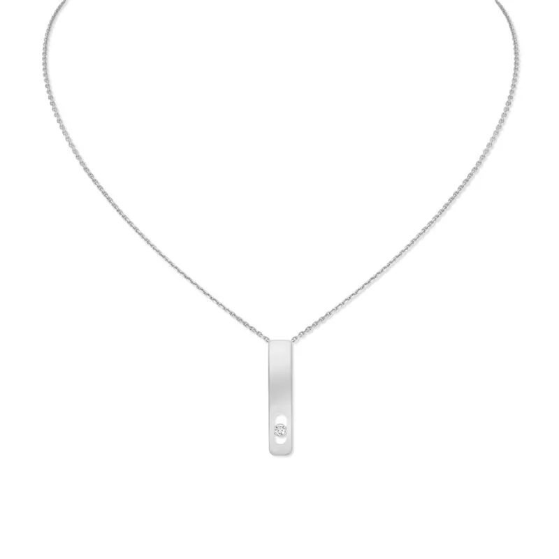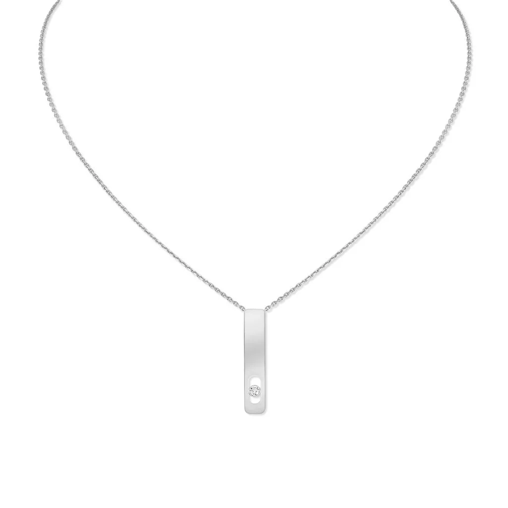 Collana della collezione My First Diamond di Messika in oro bianco con un diamante bianco.