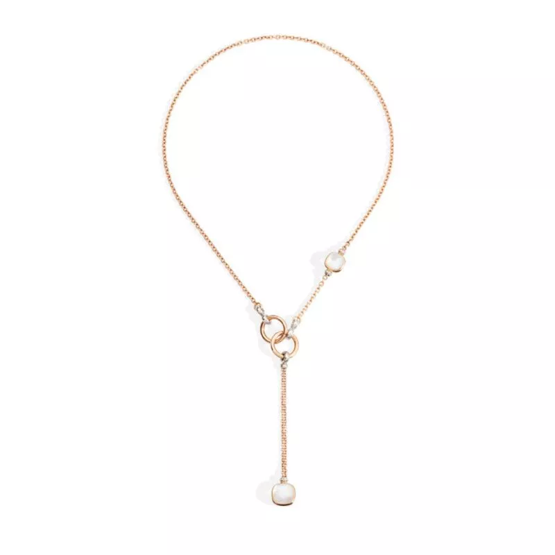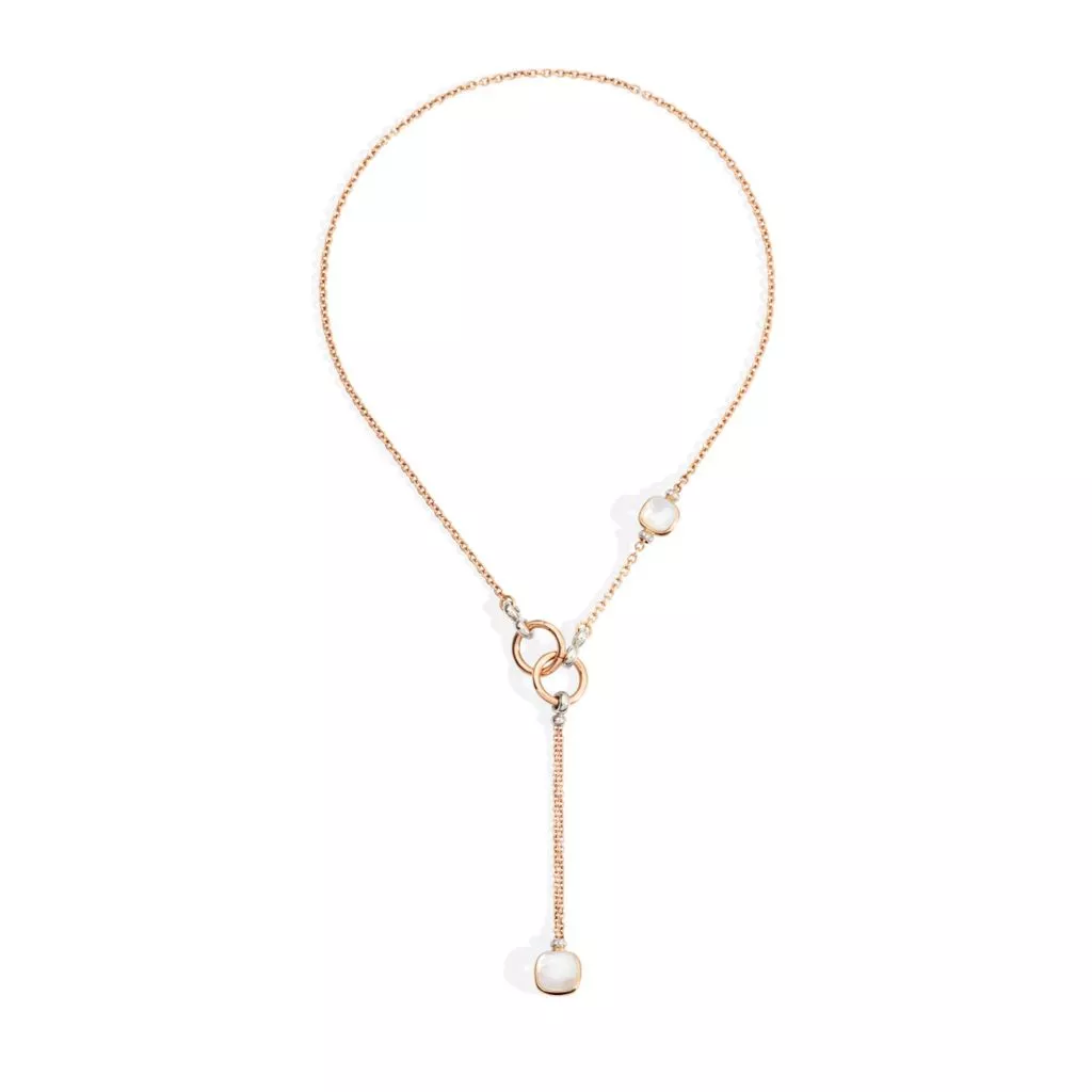 Collana Pomellato Nudo Lariat in Oro Rosa e Oro Bianco con Madreperla e Topazio Bianco con Diamanti