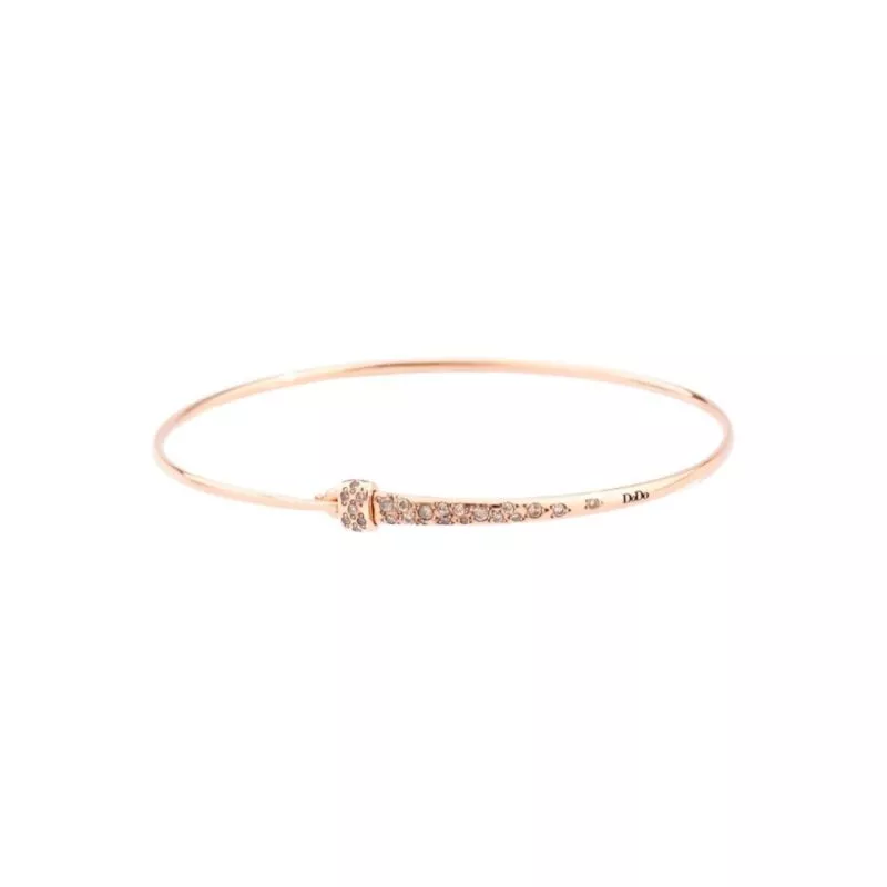 Bracciale bangle rigido in oro rosa 9 kt con 26 brillanti brown (ct 0.24), stopper incluso.