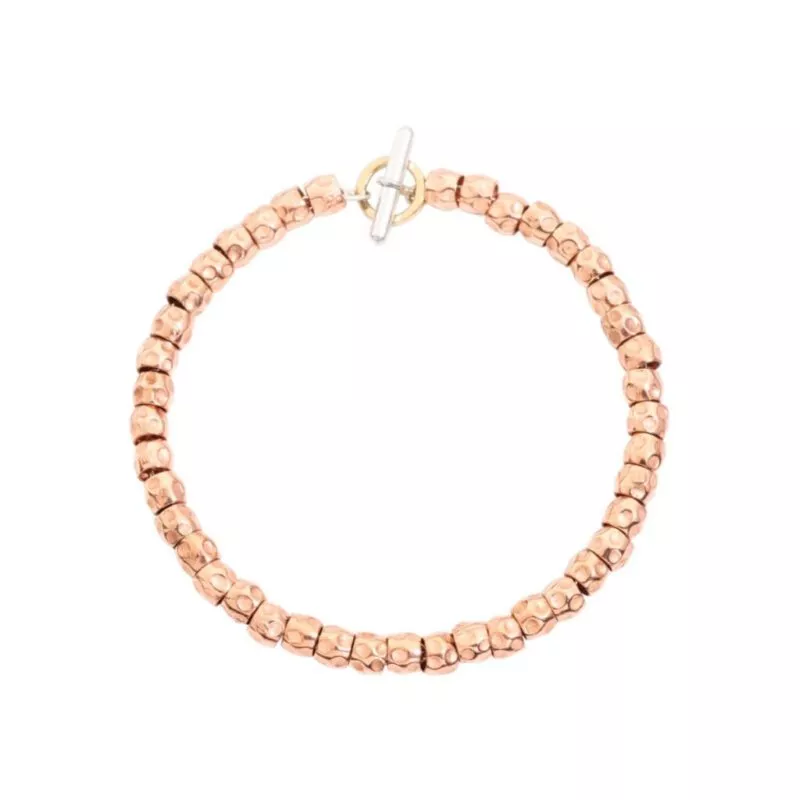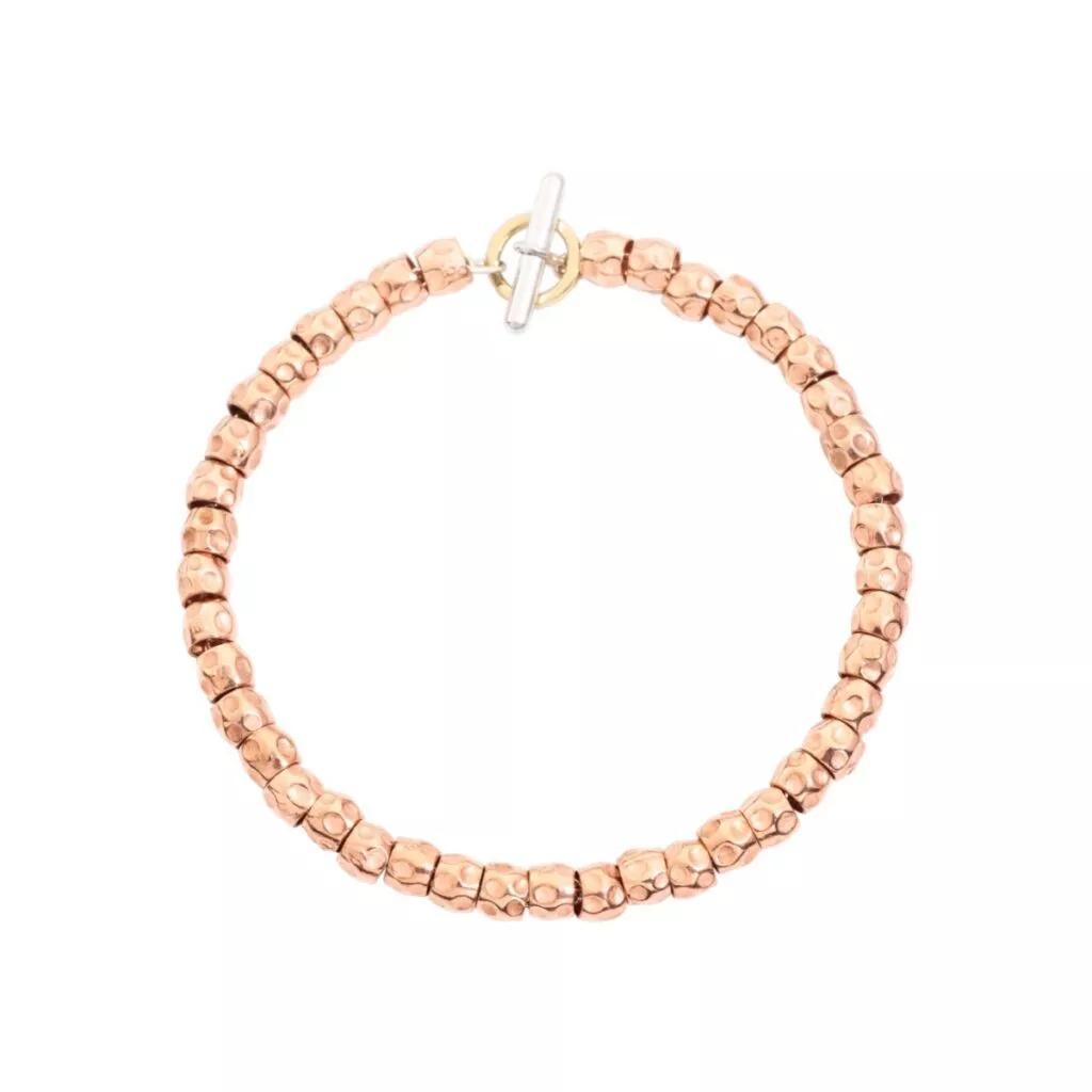 Bracciale, collezione Granelli, con anima interna in argento, chiusura con anello brisè in oro giallo 18 kt e granelli in oro rosa 9kt.