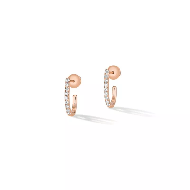 Orecchini della collezione Gatsby di Messika in oro rosa con diamanti bianchi.