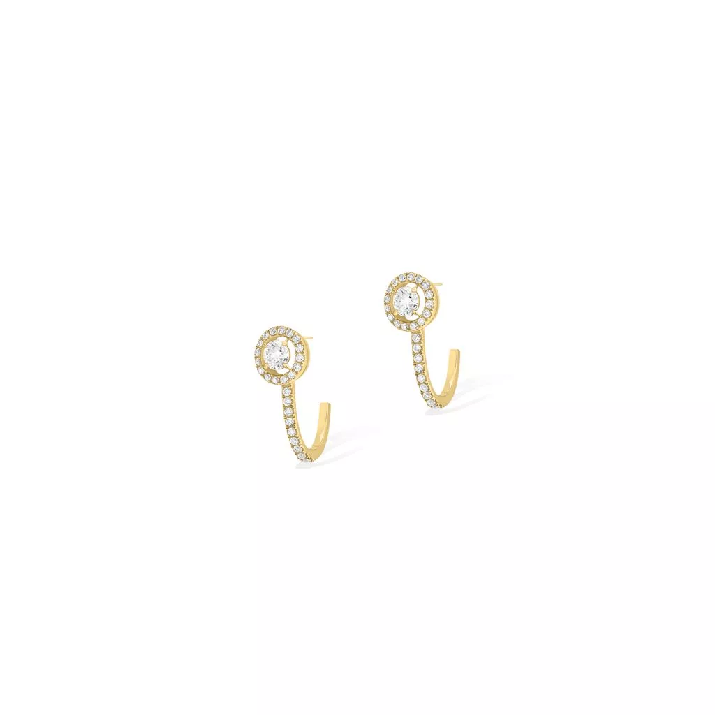 Orecchini a cerchio della collezione Joy di Messika in oro giallo con diamanti bianchi.