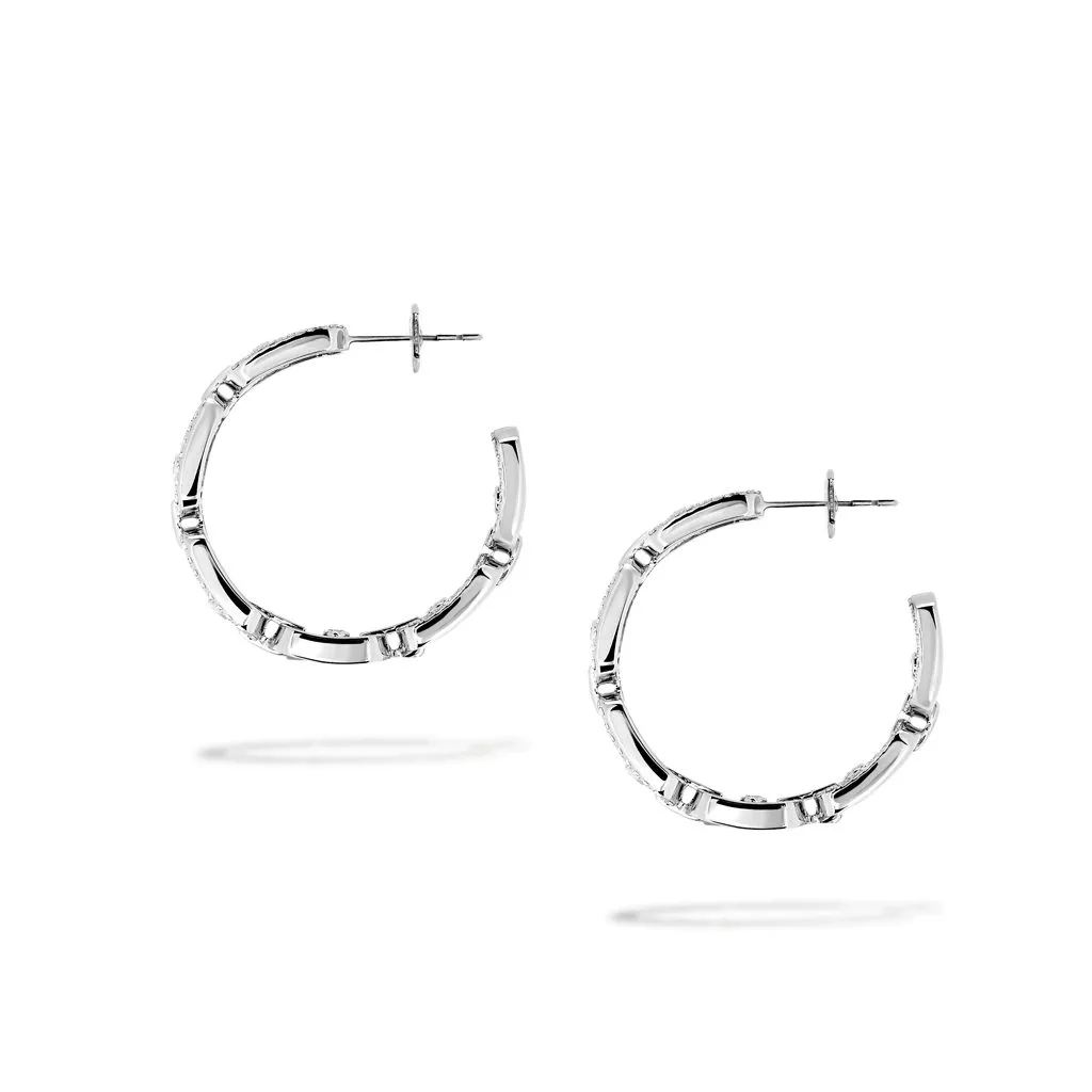 Questi orecchini a cerchio Move Link PM sono realizzati in oro bianco. Dei scintillanti diamanti bianchi li illuminano ulteriormente.