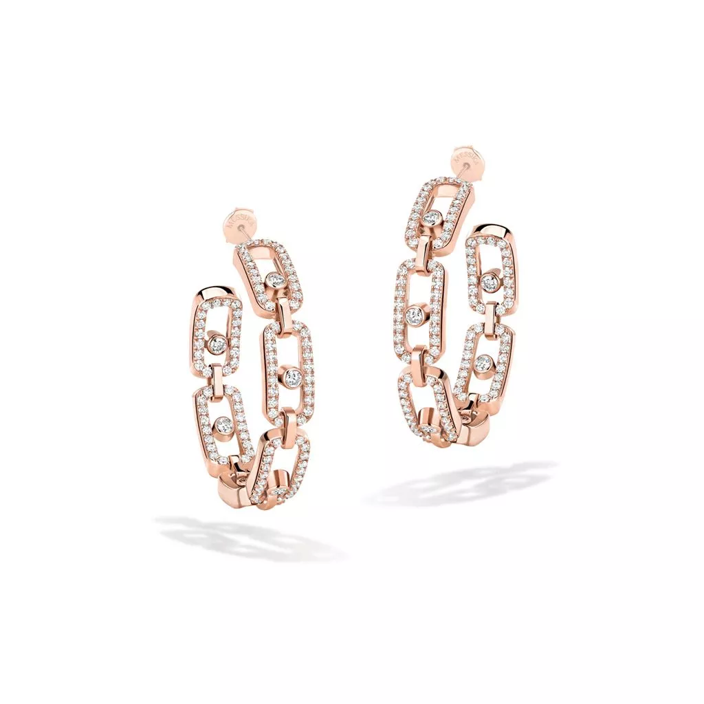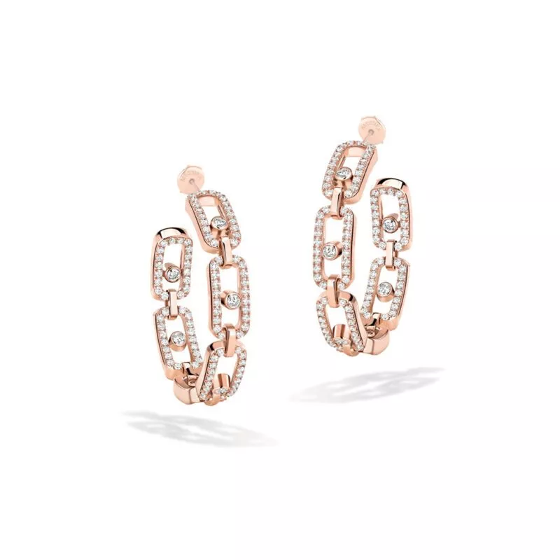 Orecchini a cerchio PM di Messika della collezione Move Link realizzati in oro rosa con diamanti bianchi.