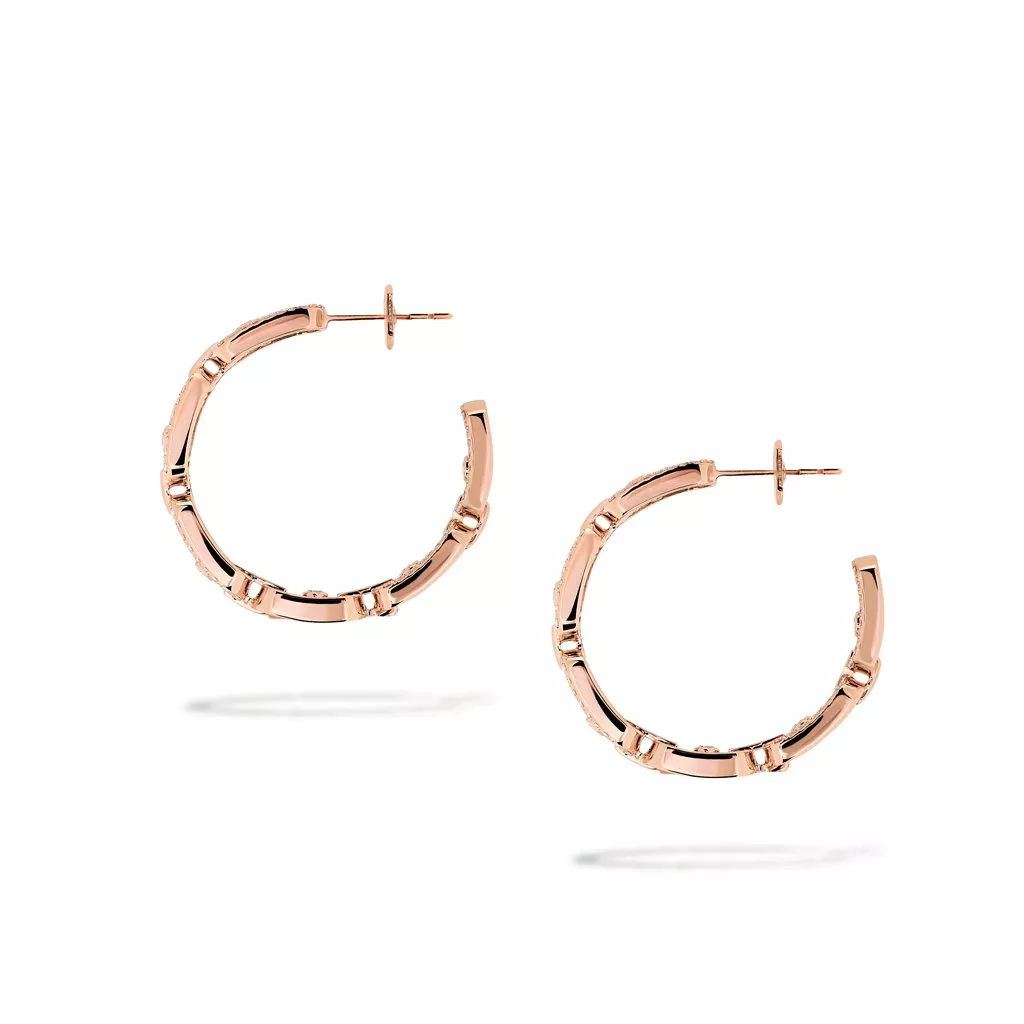 Questi orecchini a cerchio Move Link PM sono realizzati in oro rosa. Dei scintillanti diamanti bianchi li illuminano ulteriormente.