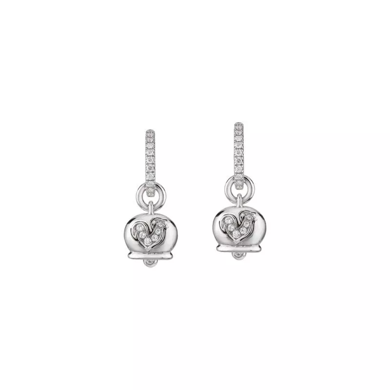 Orecchini Chantecler Campanella Piccola in Oro Bianco e Galletto con Diamanti