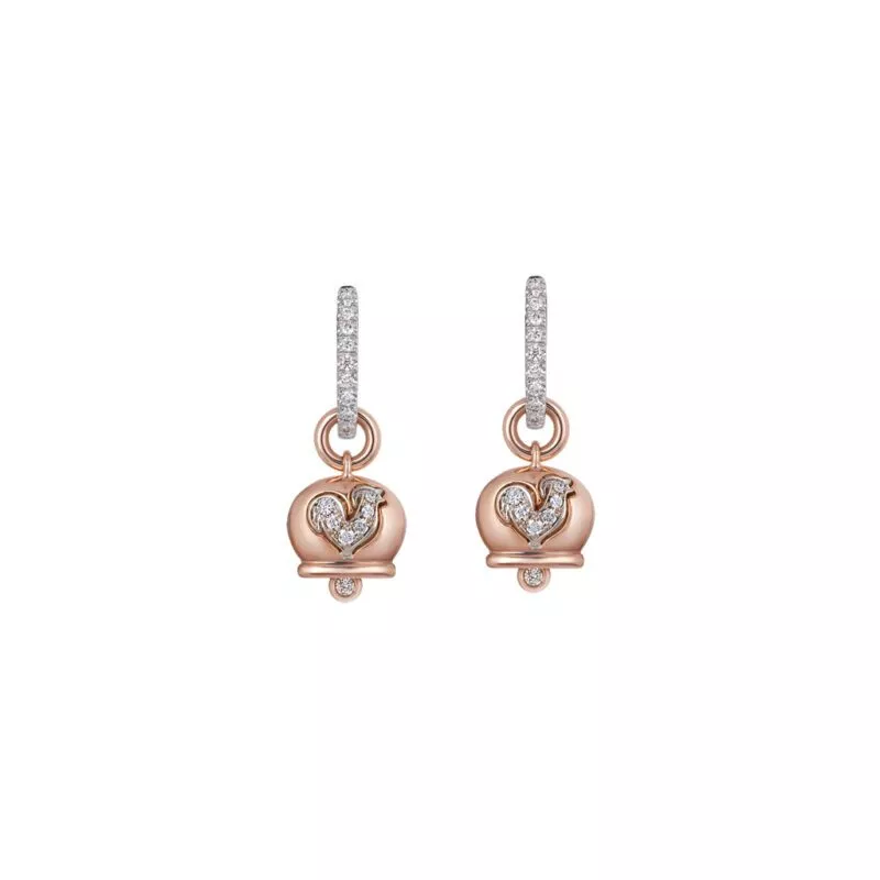Orecchini Chantecler Campanella Piccola in Oro Rosa e Galletto con Diamanti