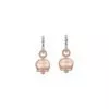 Orecchini piccoli Campanella di Chantecler in oro rosa 18Kt e diamanti bianchi. Presentano un gallo con pavé di diamanti.