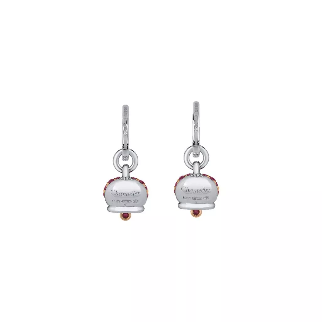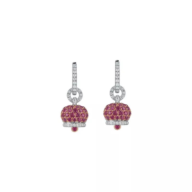 Orecchini Chantecler Campanella piccola in oro rosa e oro bianco 18Kt con diamanti bianchi e pavé di rubini.