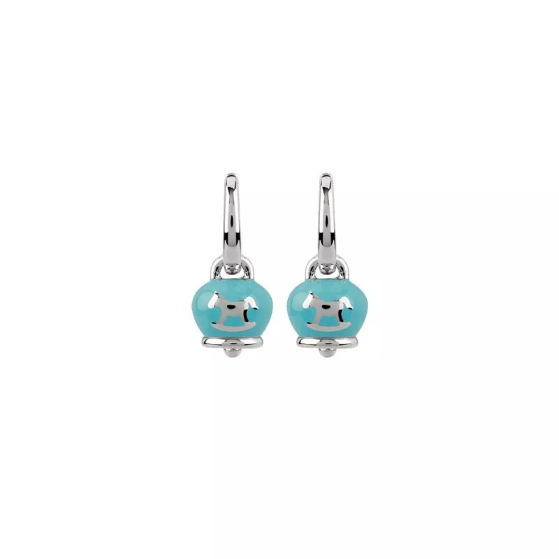 Questi orecchini con Campanella piccola sono realizzati in argento e sono abbelliti da uno smalto azzurro. Una cavallino a dondolo sul retro lo decora.