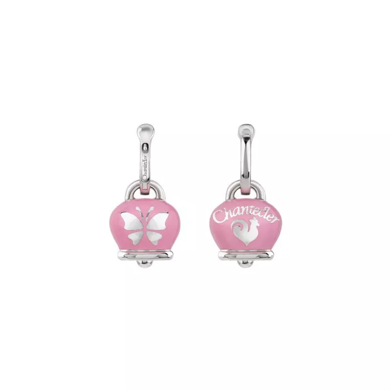 Orecchini con Campanella media della collezione Et Voilà Campanelle di Chantecler realizzati in argento. Con smalto rosa intenso e una farfalla sul retro.