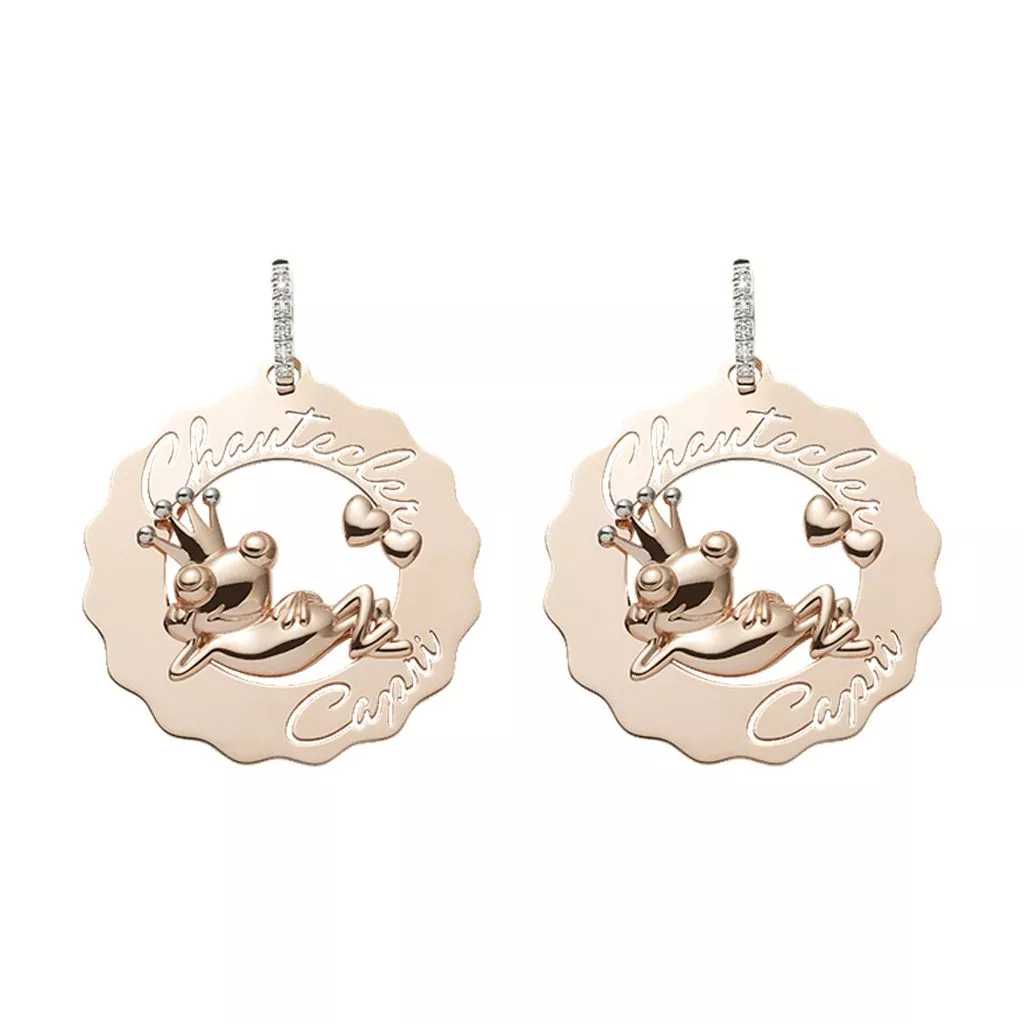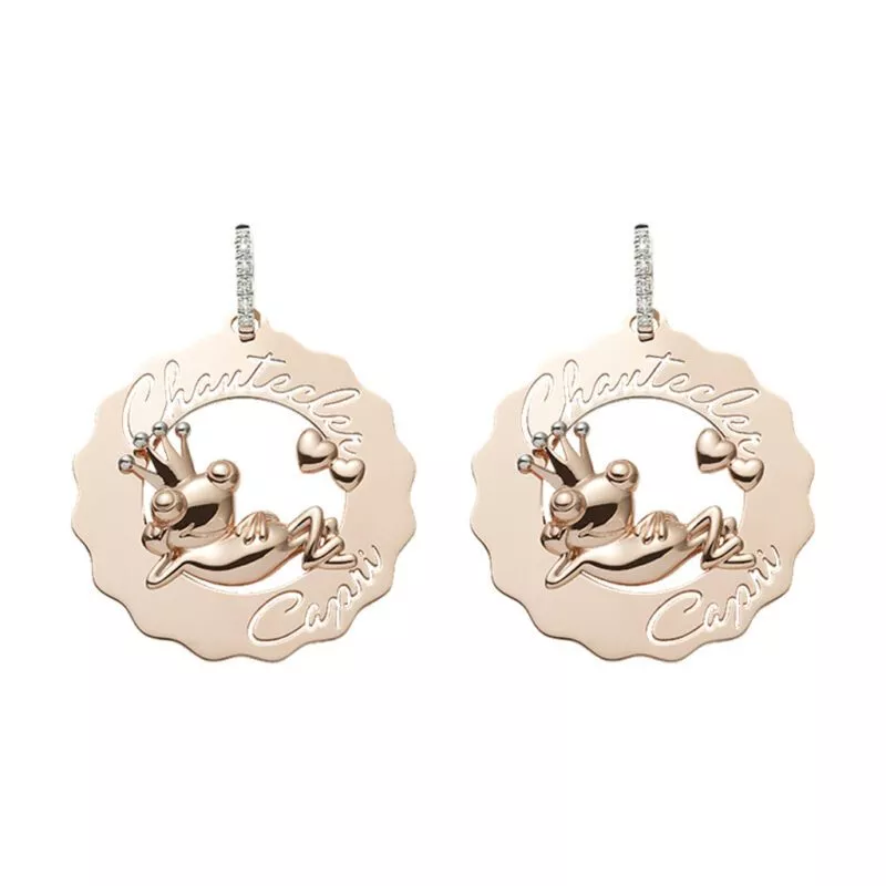 Orecchini Chantecler Logo Principe Ranocchio Grande in Oro Rosa con Diamanti