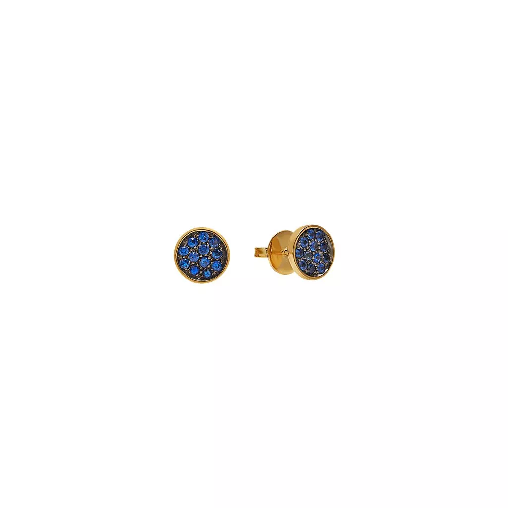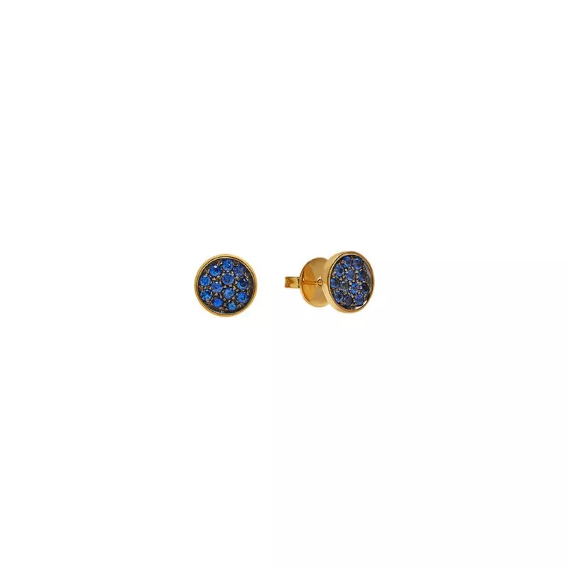 Questi orecchini a lobo Paillettes Capritude di Chantecler di 10 mm sono realizzati in oro giallo 18Kt. Un raffinato pavé di zaffiri blu li abbellisce ulteriormente.
