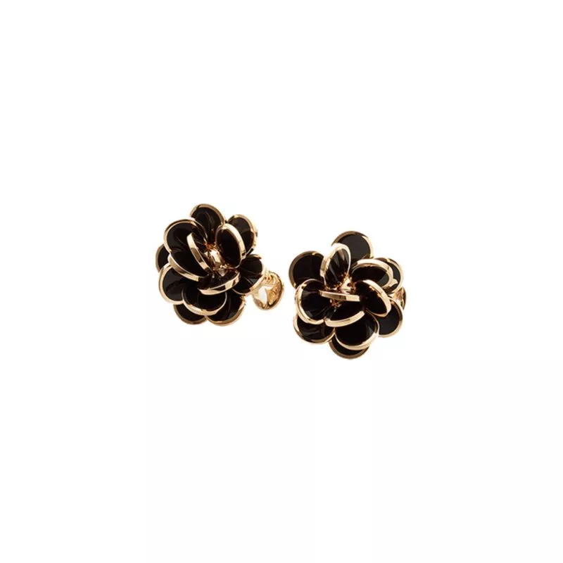 Orecchini Chantecler Paillettes Fiore Piccolo in Oro Rosa con Smalto Nero